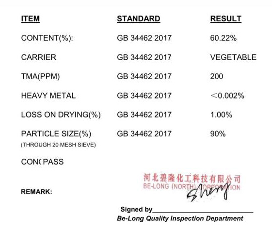 Certificate of Analysis